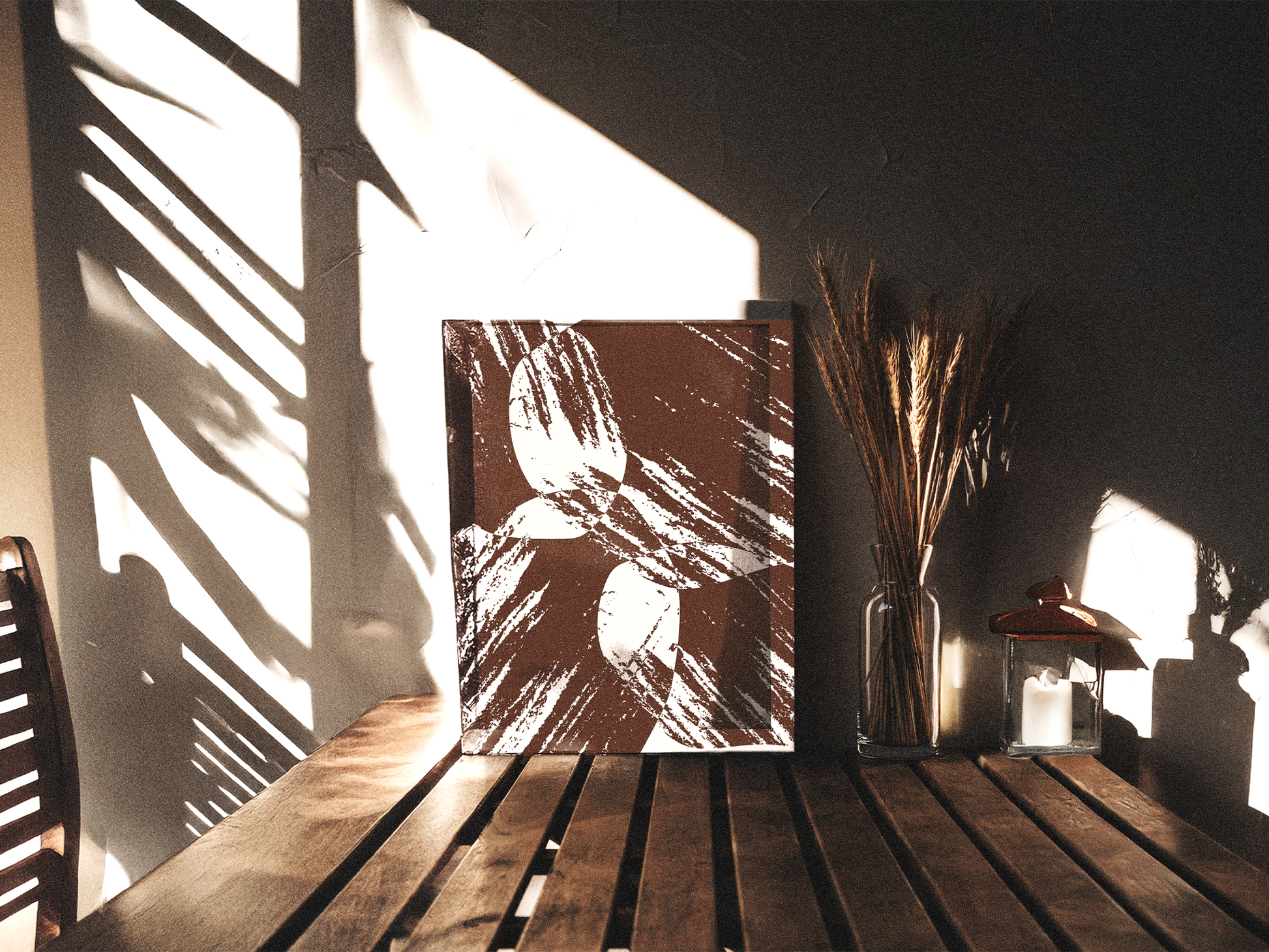 Swirls of soft blush arcs drift across a deep cocoa ground, their edges kissed with artisanal brush-marks. Clay Reverie captures the slow rhythm of hand-thrown pottery—the moment when fresh glaze meets raw clay and leaves a perfectly imperfect trace. Inspired by NaCozy’s serve-ware collection, it brings the soul of the table to your walls.