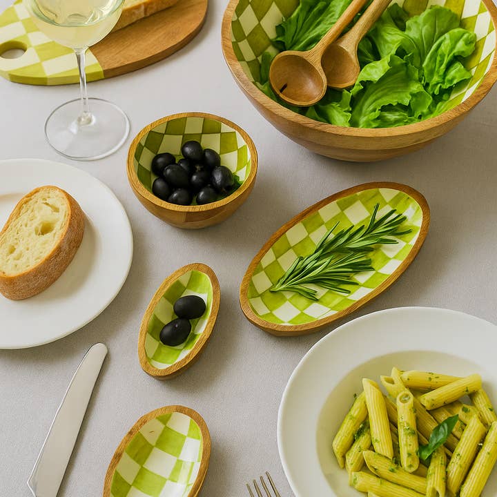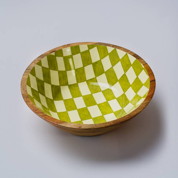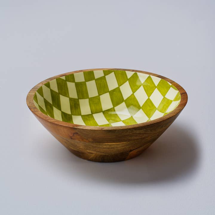 Handcrafted from sustainably sourced mango wood, this hand-painted bowl brings warm grain and quiet, graphic detail to the table. Light yet durable, it suits relaxed serving and simple styling—from rustic to modern settings. Each piece is finished by hand, so subtle variations in tone and pattern make every bowl unique.