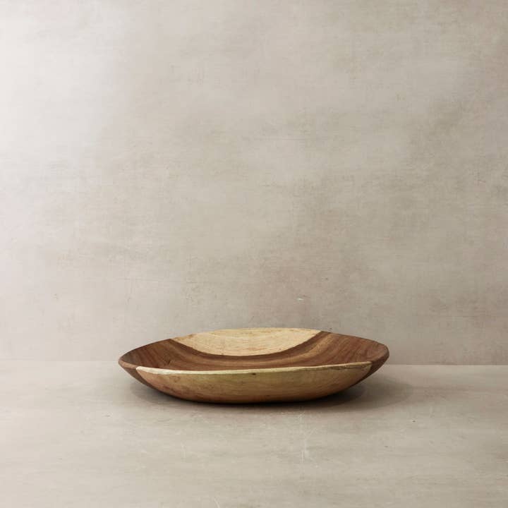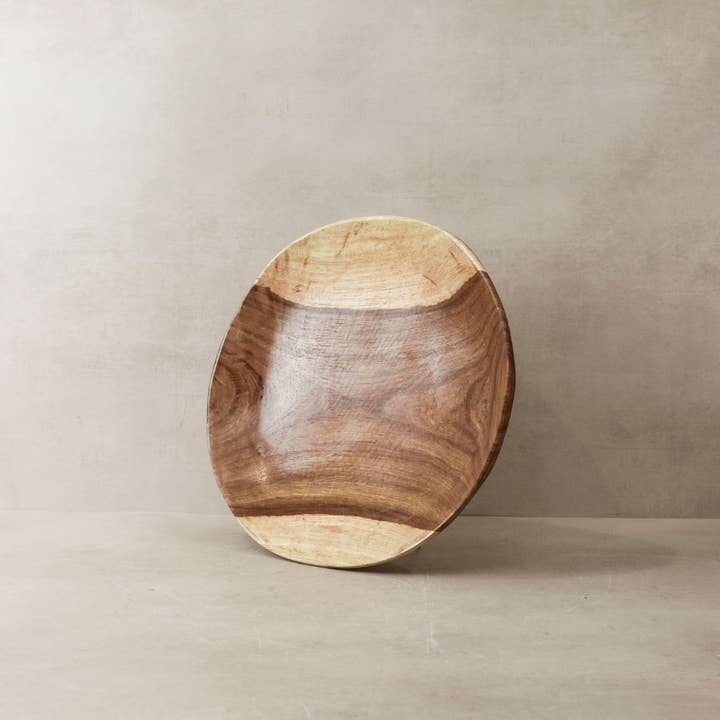 Handcrafted wooden bowl with a calm, rustic presence and beautifully varied grain. Each piece is one of a kind—ideal for fruit, generous salads, or as a simple decorative accent that brings warmth and character to the room.