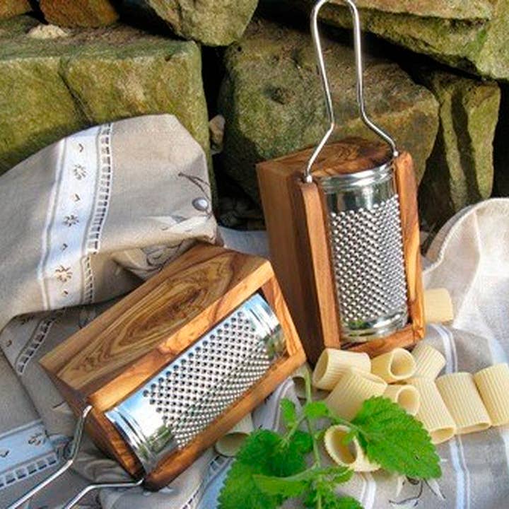 Crafted from olive wood with a high-quality stainless-steel grater, this hard-cheese and nutmeg grater brings neat, no-waste prep to the kitchen. A built-in drawer collects the shavings as you grate—perfect for Parmesan, pecorino, Gruyère, and spices for pastas, risottos, gratins, and more. Compact, tactile, and made to last.