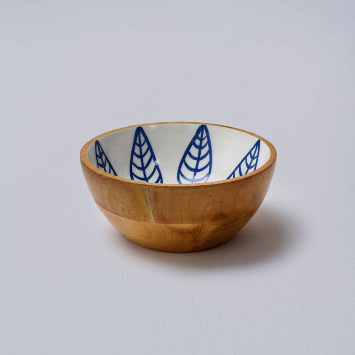 Handcrafted from mango wood with a hand-painted enamel interior, this bowl brings warm grain and quiet colour to everyday tables. Light yet durable, it’s sized for snacks, small salads, or relaxed sides—and just as lovely as a simple decorative catch-all. Each piece is finished by hand, so subtle variations in tone and pattern make every bowl unique.