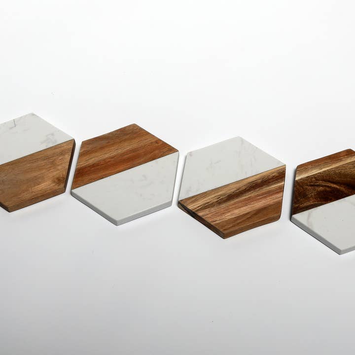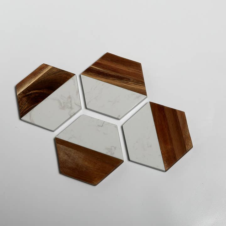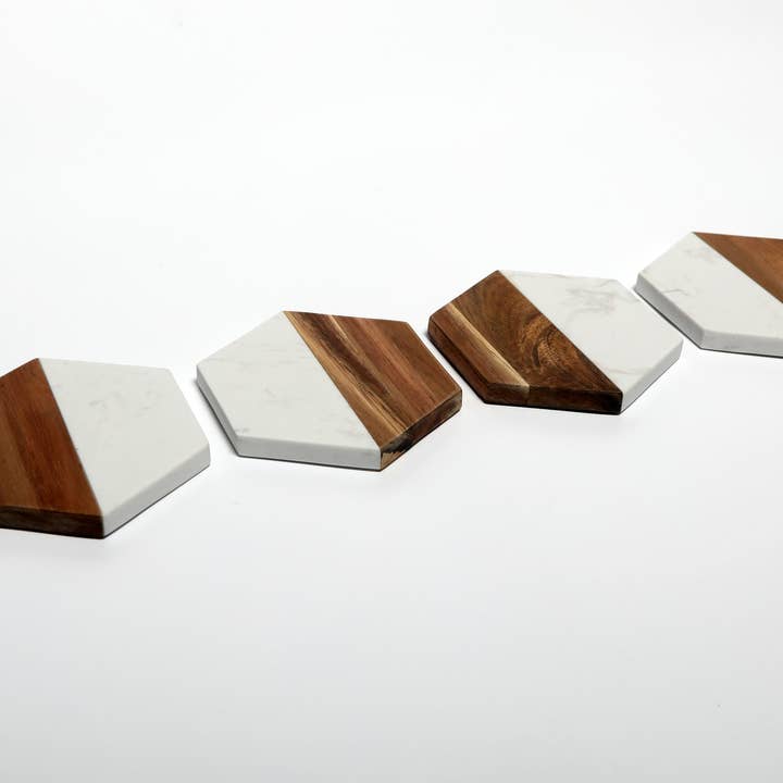 Marble and Acacia Wood Drinks Hexagonal Coasters (set of 4)