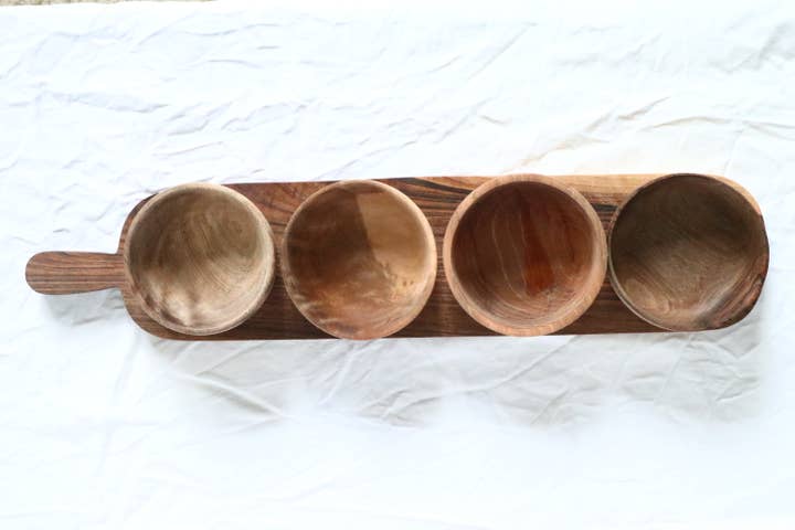 Wooden Walnut Board Serving with 4 Wooden Bowls